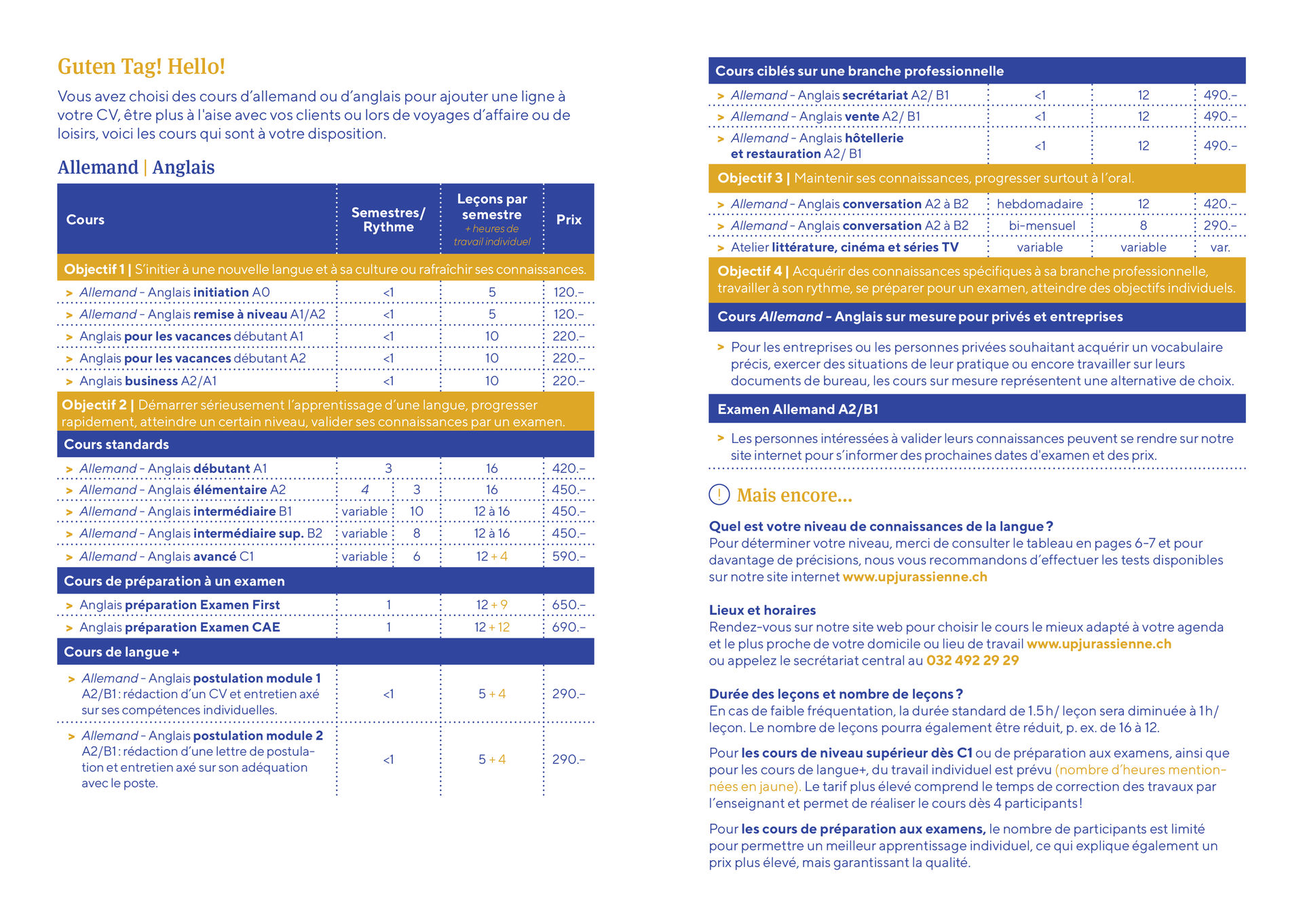 Délai d’inscription : des cours peuvent démarrer tout au long du semestre, les délais d’inscription sont fixés 3 semaines avant le démarrage du cours (15 jours ouvrables), afin de nous permettre de faire des relances, de confirmer ou d’annuler les cours dans des délais raisonnables.