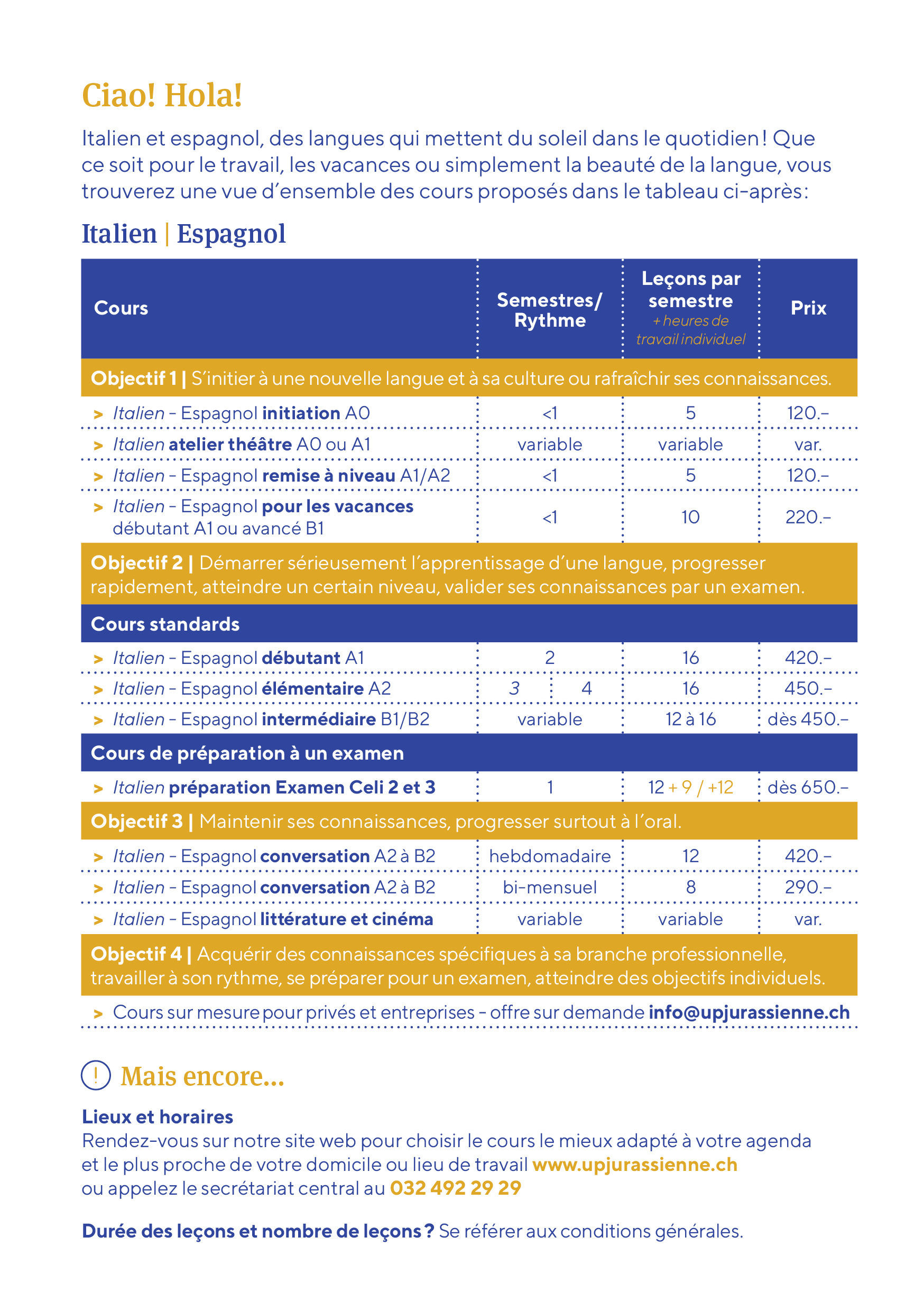 Délai d’inscription : des cours peuvent démarrer tout au long du semestre, les délais d’inscription sont fixés 3 semaines avant le démarrage du cours (15 jours ouvrables), afin de nous permettre de faire des relances, de confirmer ou d’annuler les cours dans des délais raisonnables.