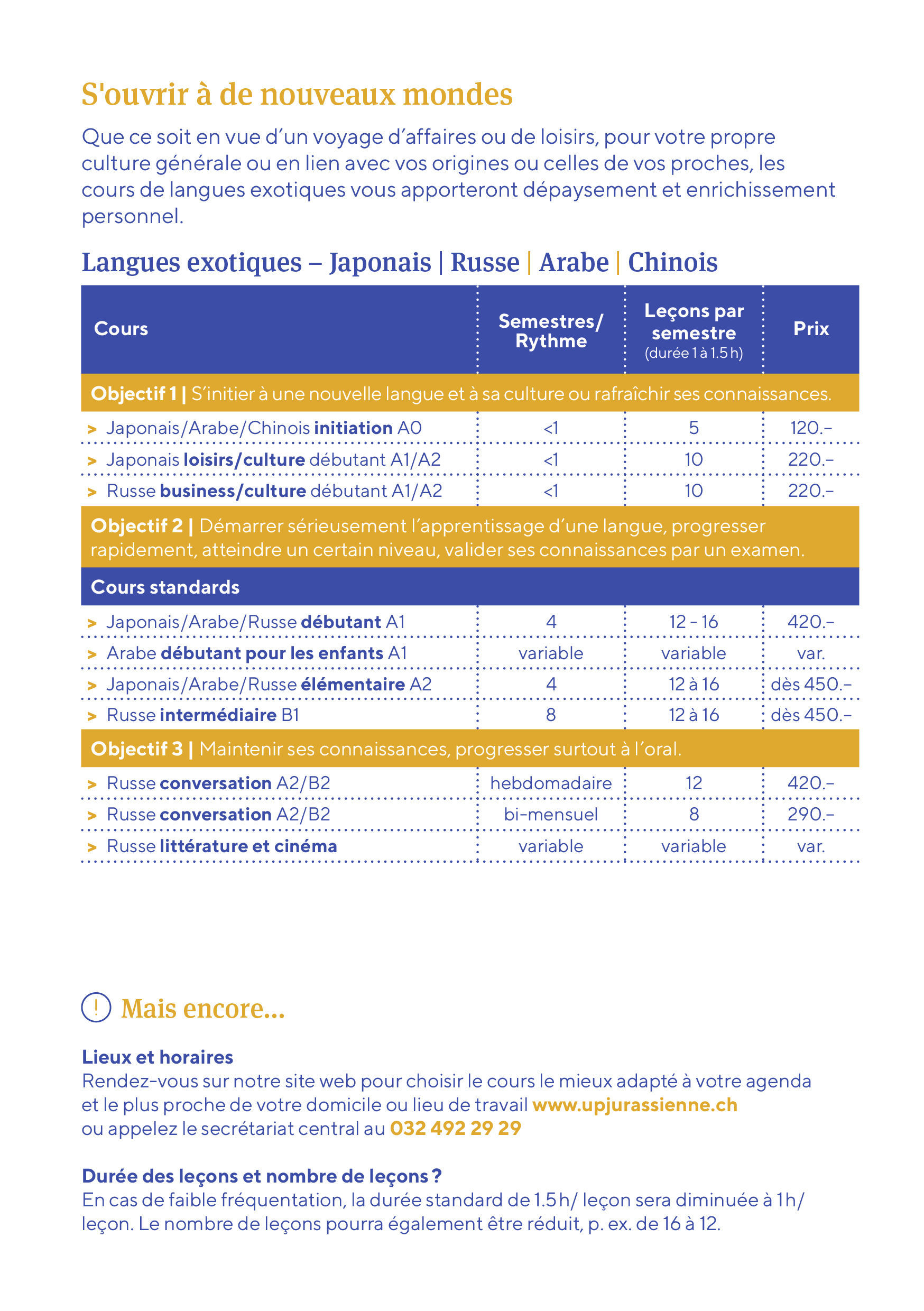 Délai d’inscription : des cours peuvent démarrer tout au long du semestre, les délais d’inscription sont fixés 3 semaines avant le démarrage du cours (15 jours ouvrables), afin de nous permettre de faire des relances, de confirmer ou d’annuler les cours dans des délais raisonnables.